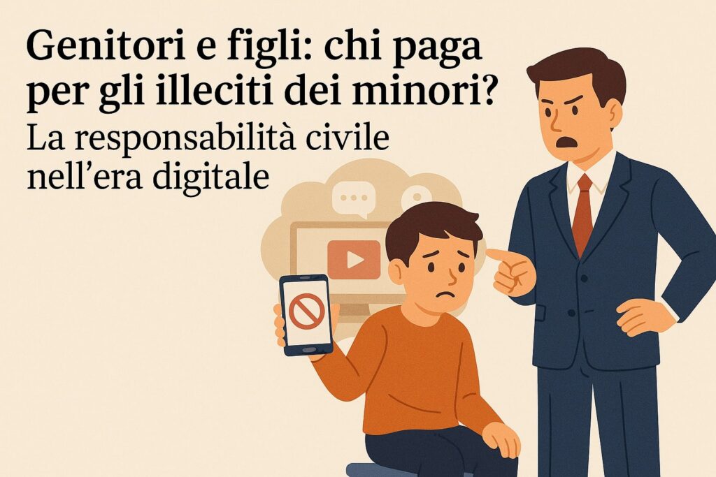 Genitori e figli: la responsabilità civile per gli illeciti dei minori Cosa prevede la legge italiana sulla responsabilità dei genitori Un video offensivo su YouTube, un atto di bullismo a scuola, un danno a un bene altrui: quando un minore commette un illecito, chi ne risponde?La legge italiana è chiara: